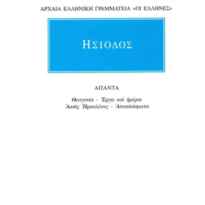 «Θεογονία»: Η γένεση των θεών και η δημιουργία του κόσμου, οι αγώνες και οι συγκρούσεις για την κοσμική τάξη μετά την επικράτηση του Δία. Η πρώτη προσπάθεια συστηματοποίησης της ελληνικής μυθολογίας. — «Έργα και ημέραι»: Με αφορμή τη φιλονικία με τον αδελφό του, ο ποιητής κατακρίνει την αδικία, υμνεί το δίκαιο και εκθειάζει ως ιδεώδες την εργασία. Με πολλές συμβουλές για ηθικά ζητήματα, με πλήθος πληροφοριών, λαογραφικών και ηθολογικών, το έργο φέρνει στο προσκήνιο τον κόσμο των φτωχών γεωργών και ναυτικών, την καθημερινή ζωή τους και τον μόχθο τους. — «Ασπίς Ηρακλέους»: Περιγραφή της ασπίδας του Ηρακλή και της μονομαχίας του ήρωα με τον Κύκνο.